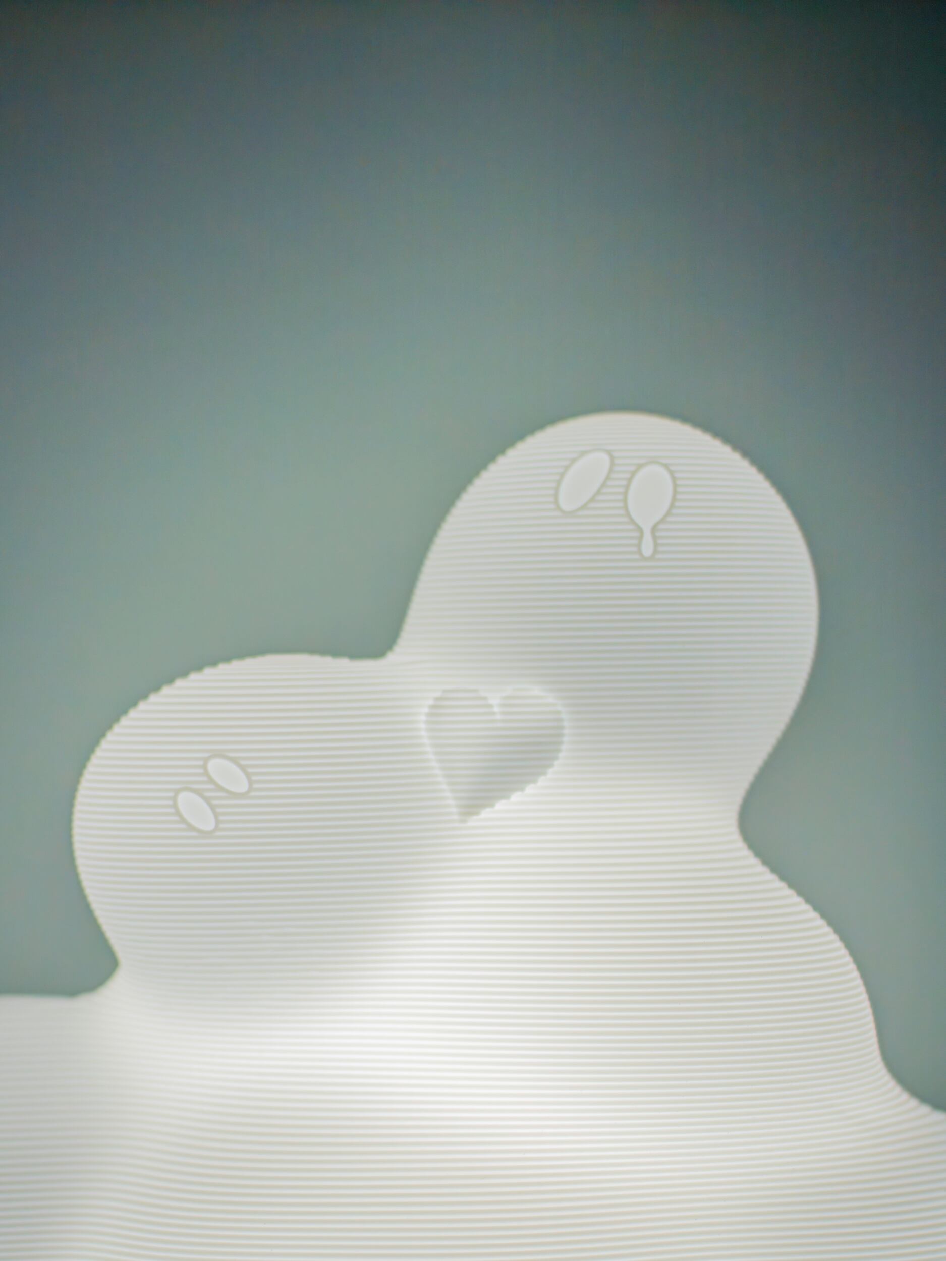 光らない時も存在感のある、光る雲の作品です。黄変の可能性があるため、紫外線に長時間晒される場所への設置は避けてください。